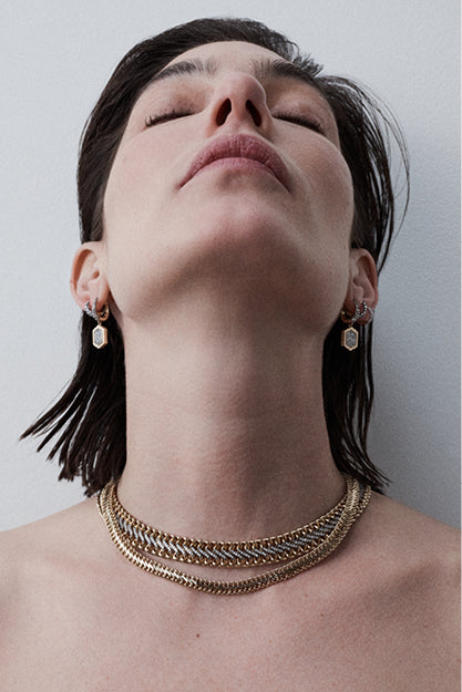 An eight-point Northern star. A wishbone, full of potential. A waning crescent moon. The Iconography collection looks anew at the ephemeral symbols that guide us, redefining them in gold and Victorian-set pavé.