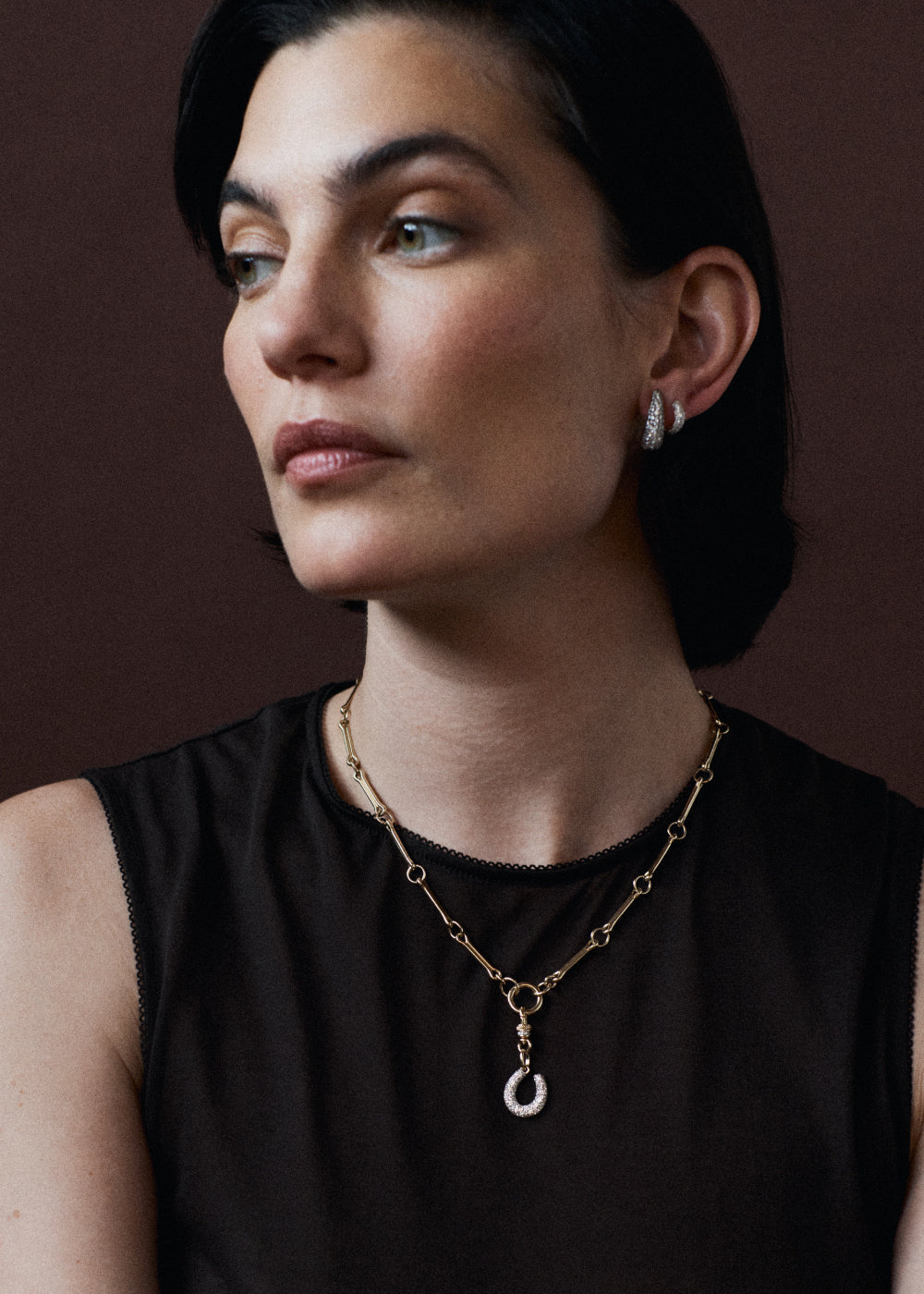 Taking a Lucy Delius classic based on an archetypal Victorian trombone link watch chain and re-working it in miniature. 14 karat gold mini trombone link necklace with swivelling albert clasp. With her love of Victorian ingenuity, Lucy is known for playing with scale and form. This is a more delicate version of it's big sister but retains the same refined details and craftsmanship.