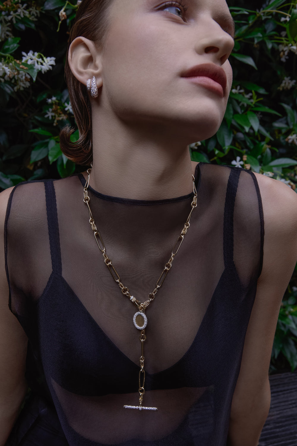 The Diamond Crescent Cuffs are a tapered 14kt yellow gold earring with Victorian-set diamond pavé. Secured with a post and butterfly back, the high post means they sit high giving them a flattering silhouette.