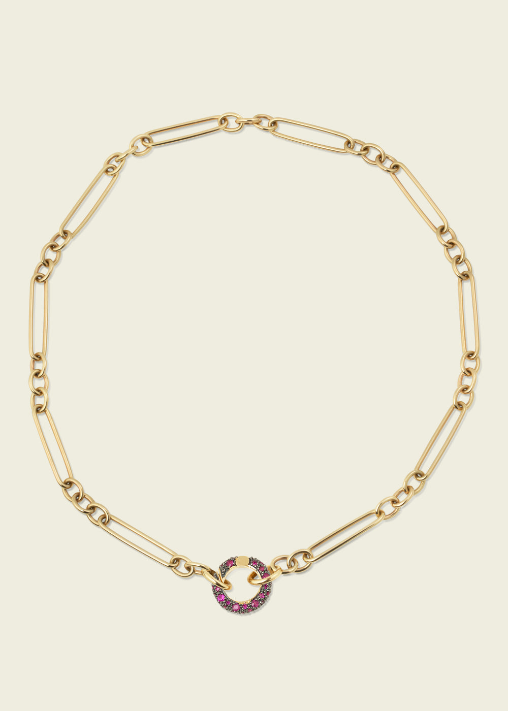 The Victorian-set diamond pavé connector link with antique finish. Crafted in 14kt yellow gold with a spring hinge, the Connection is designed to be worn with our chains and completed with a pendant.