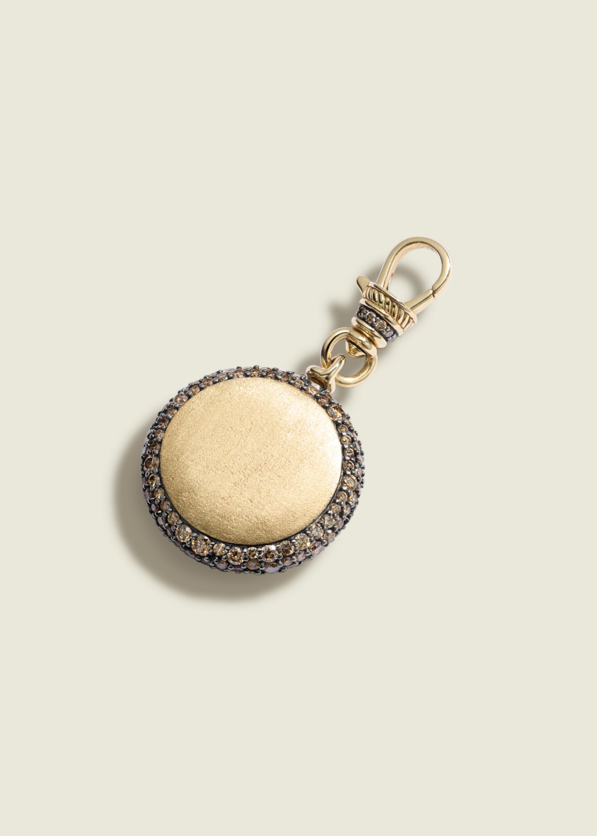 The patriarch of the Pocket Watch collection, the Grandfather pendant has the refined presence of a well-dressed Victorian gentleman. Noticeably larger than the original, this pendant has a central brilliant-cut cognac diamond surrounded by Victorian-set cognac diamond pavé. Suspended from an Albert clip with spnning bale, the reverse can be engraved.