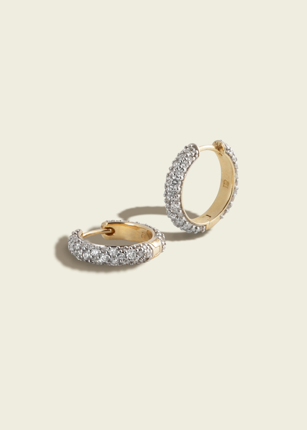 A step up from our Chubby Huggies, the Chubby Hinged Hoop is crafted in 14kt Yellow Gold with Victorian set Diamond pavé set in a White Rhodium Modern Finish. Wear alone or layer up with other hoops from the collection.