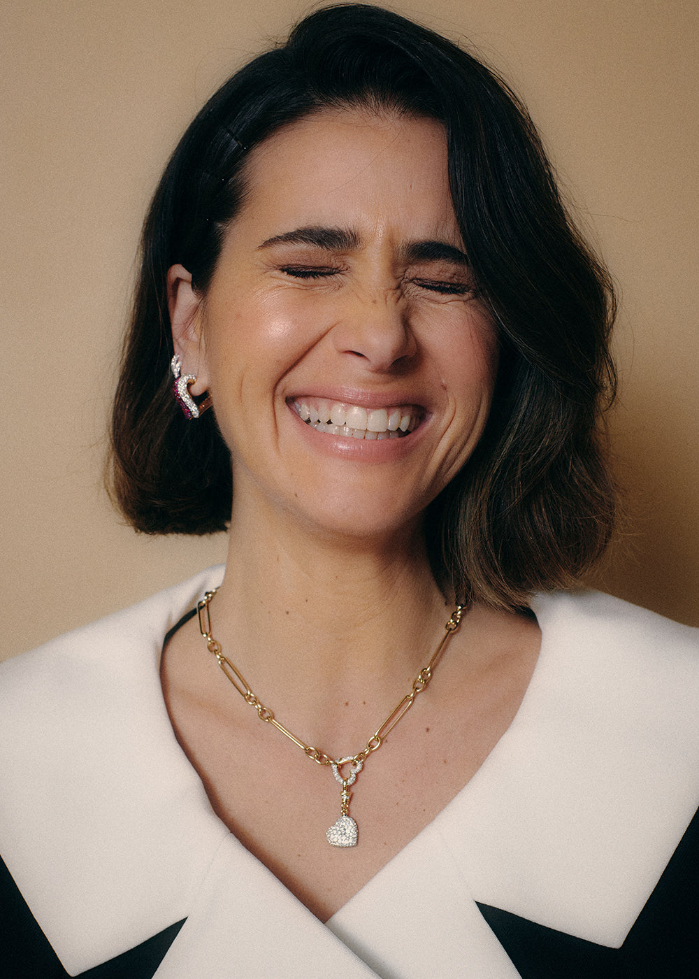 In a spinning pocket watch-style, the Chubby Love is a rounded heart pendant suspended from an Albert clip. Crafted in 14kt gold, at the centre is a heart-shaped diamond surrounded by Victorian-set diamond pavé. The diamonds have an antique finish while the reverse is satin polished and can be engraved.