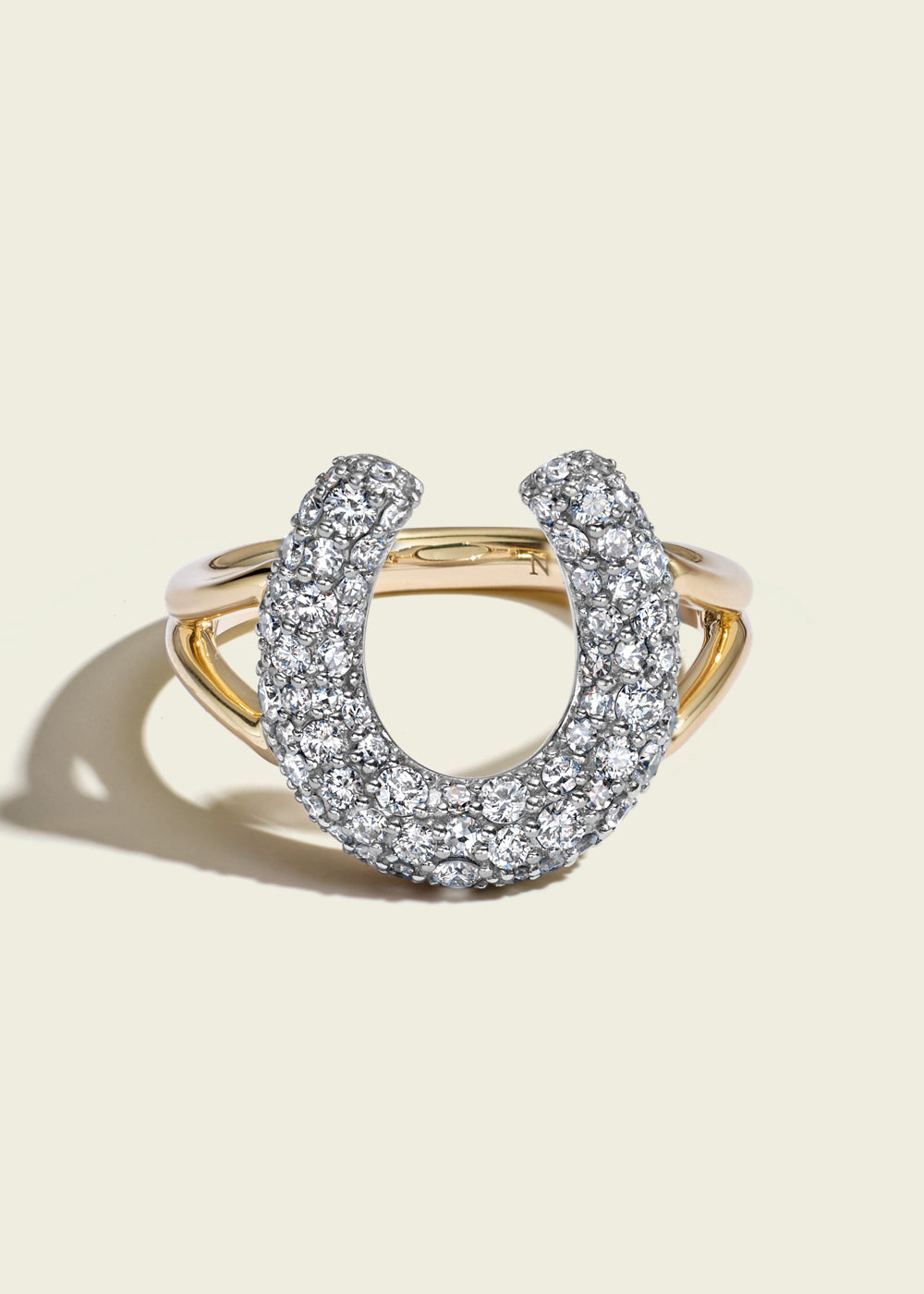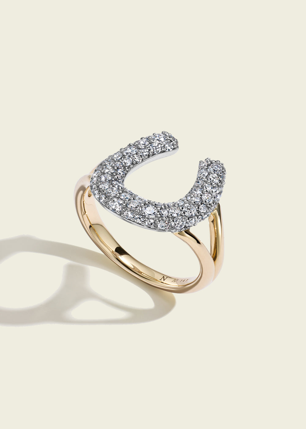 A talisman for luck and prosperity, the Victorian-set diamond pavé horseshoe ring is crafted from 14kt gold. Sitting on a split shank, the interior of the ring is curved making it fit comfortably from the first wear.
