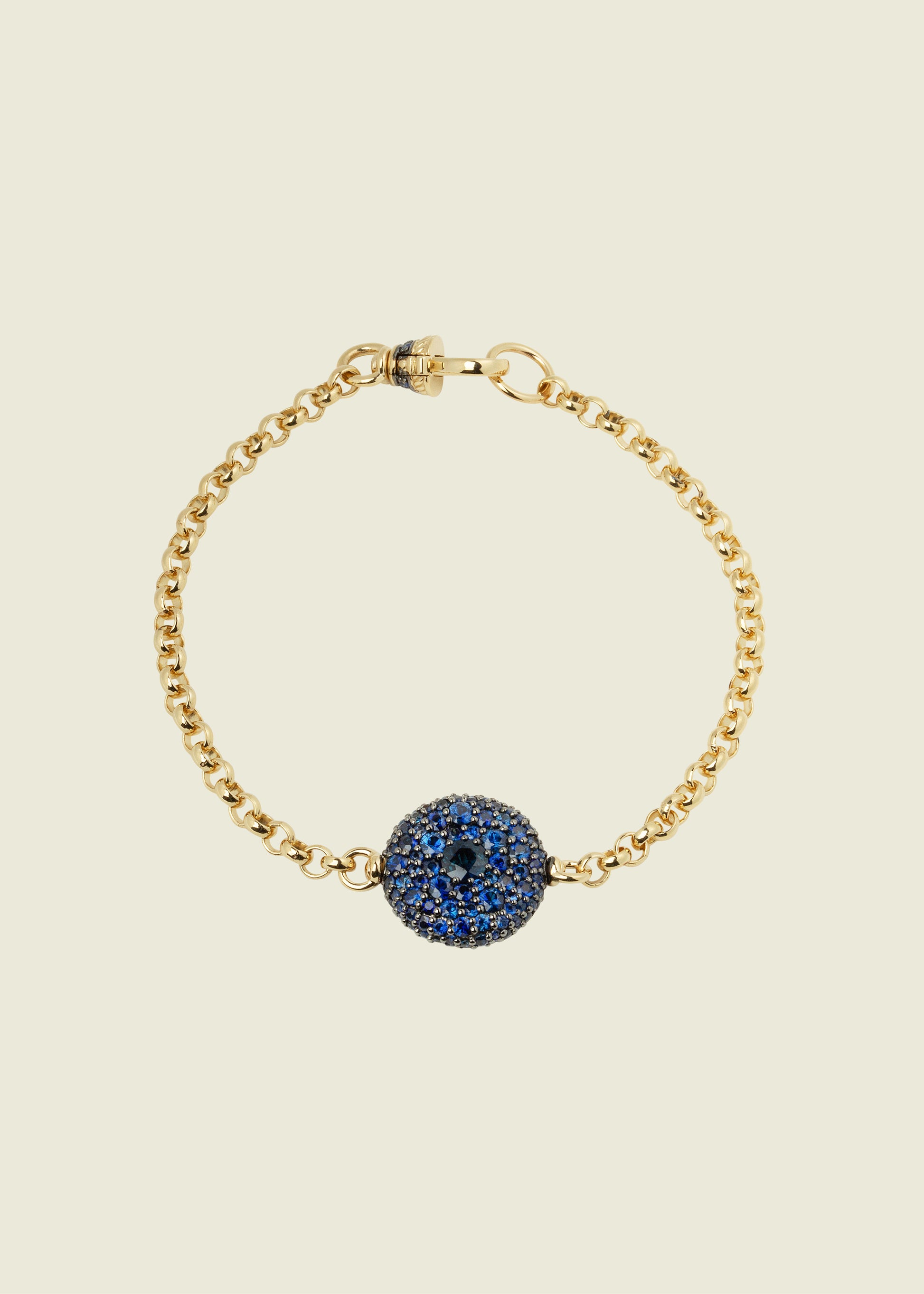 14kt yellow gold Victorian set blue sapphire pavé pocket watch bracelet in antique finish black rhodium with belcher chain and Albert clip clasp set with a delicate row of blue sapphires. 18cm total length.
