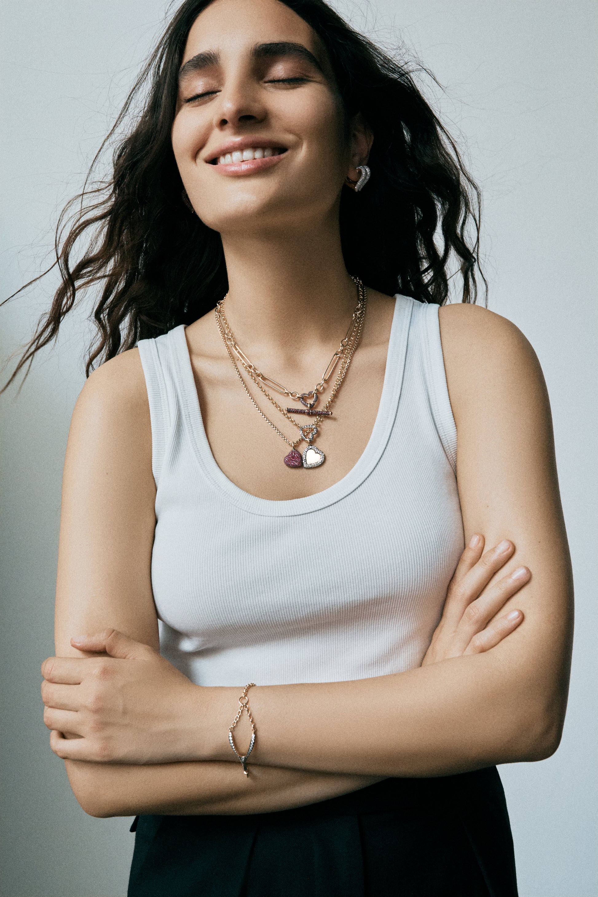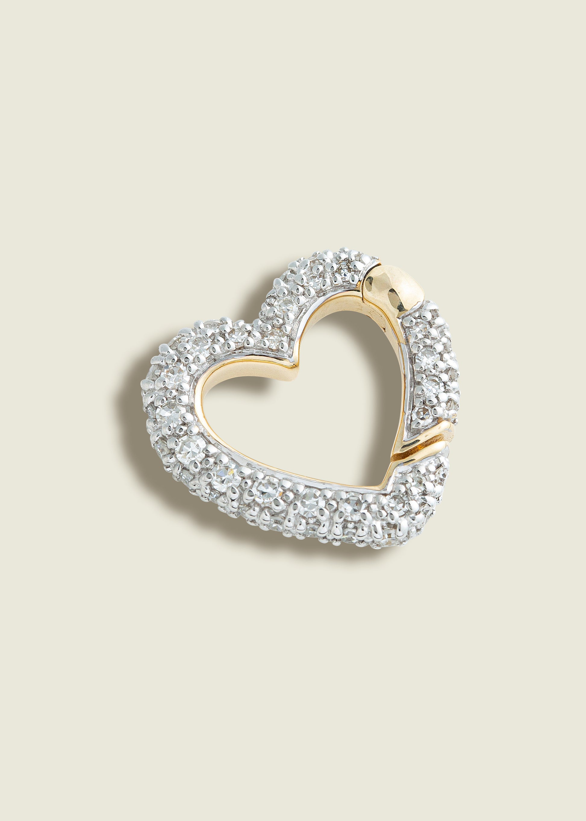 A charming version of the original Connection link, this heart-shaped connector is crafted in Victorian-set diamond pavé. The link has a spring hinge and is made from 14kt yellow gold. It can be worn as its own charm or to secure one of our chain necklaces.
